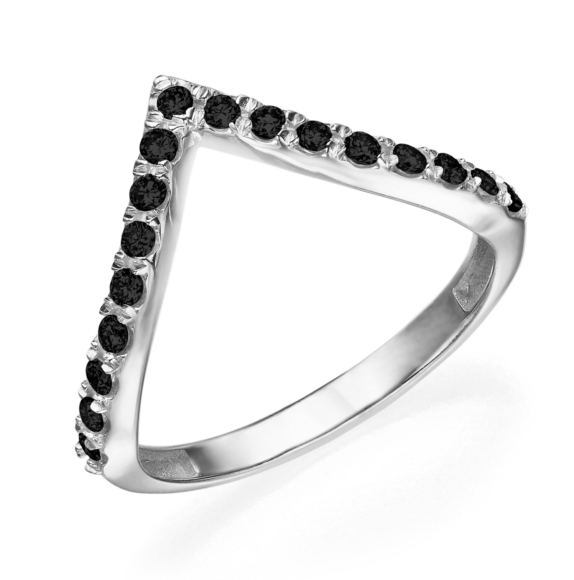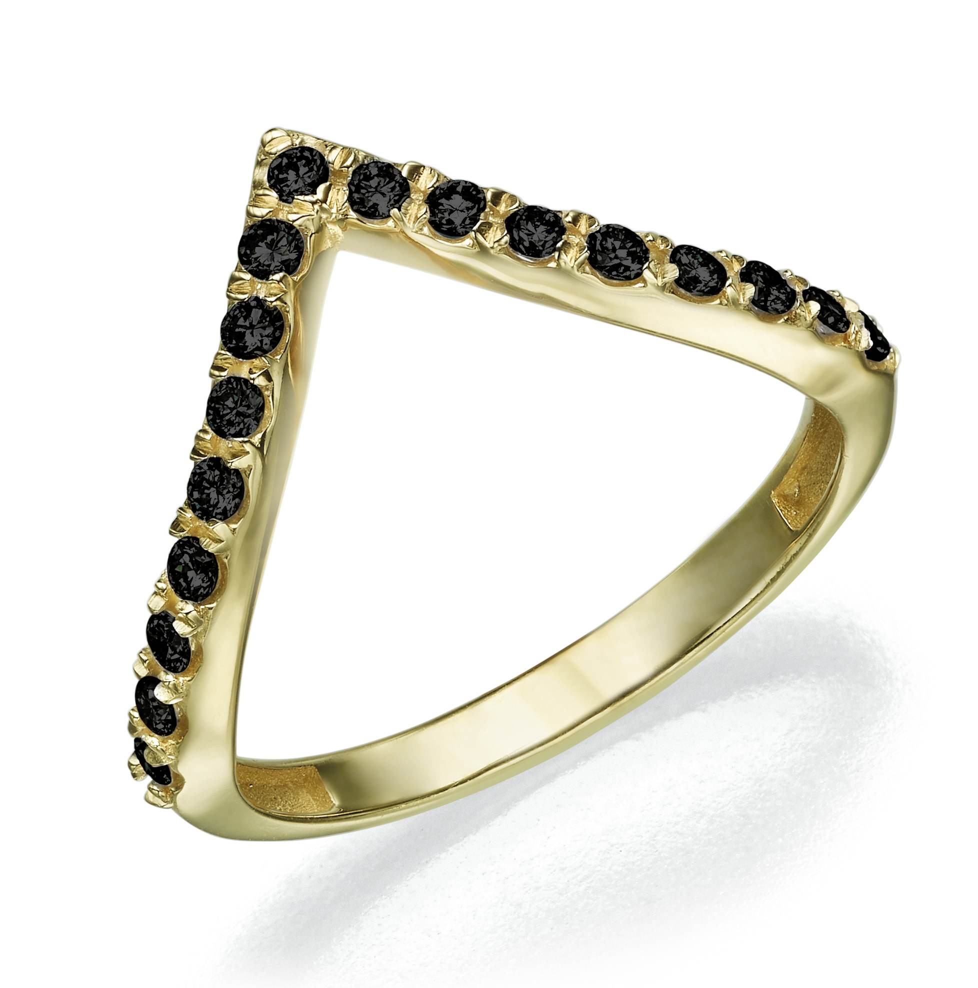 שם פריט: טבעת וי בשיבוץ אבנים שחורות