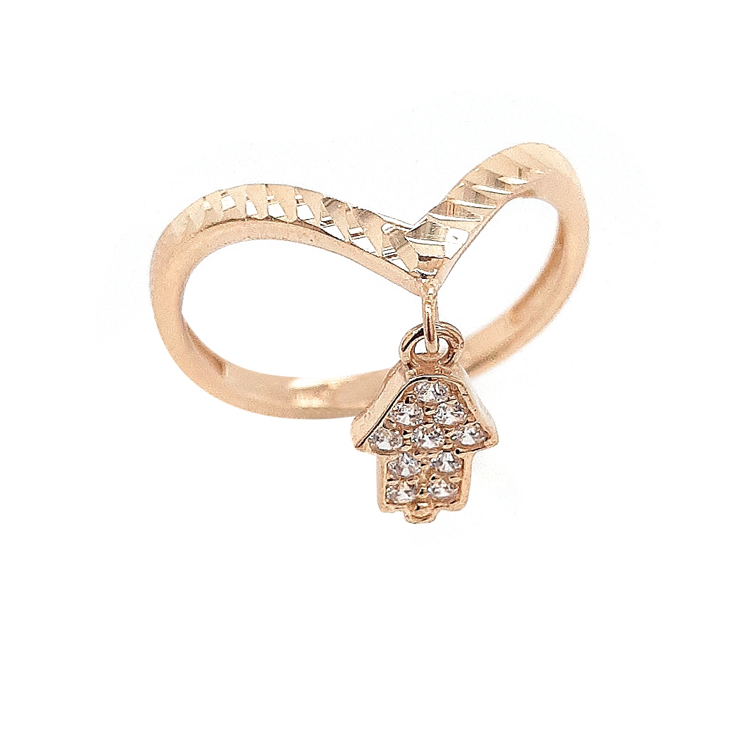 שם פריט: טבעת וי חריטות עם חמסה תלויה