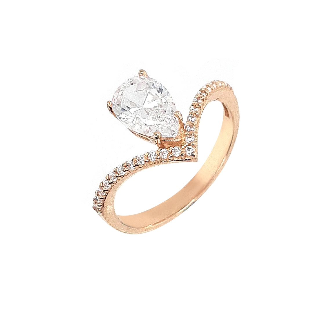 שם פריט: טבעת וי עם זרקון טיפה