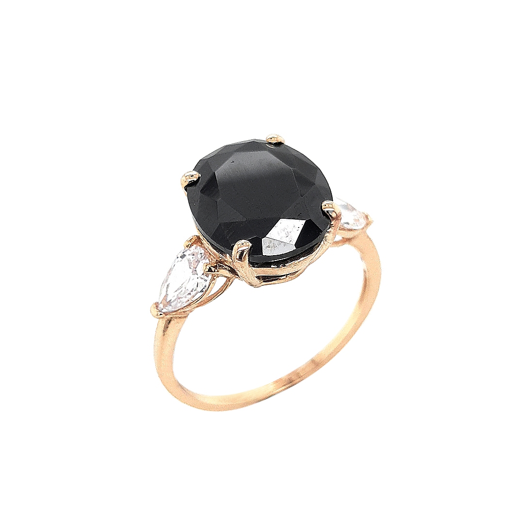 שם פריט: טבעת זרקון אובלית בשחור עם בגטים בצדדים דגם: GR33
