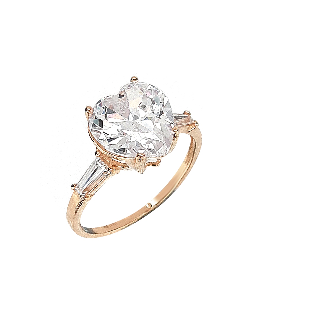 טבעת זרקון לב עם בגטים בצדדים quantity
