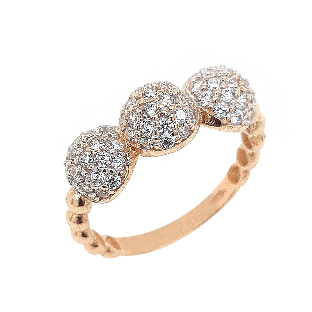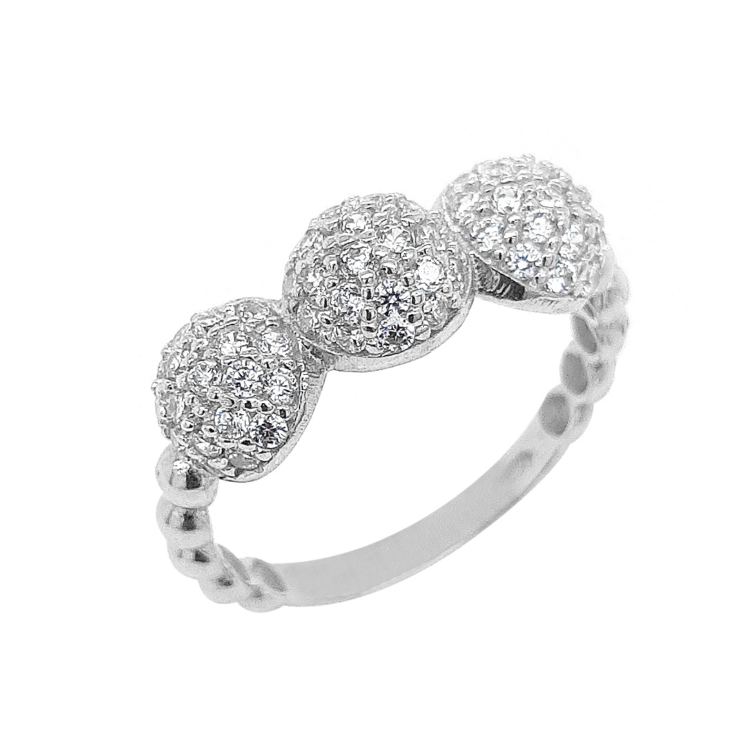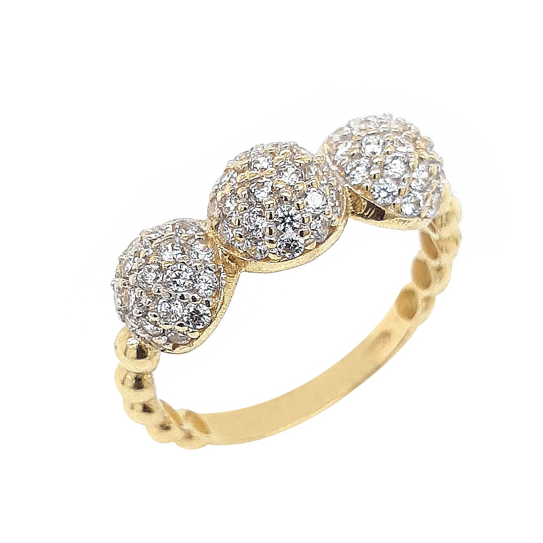 שם פריט: טבעת כדורים עם 3 עיגולי פווה משובצים זרקונים