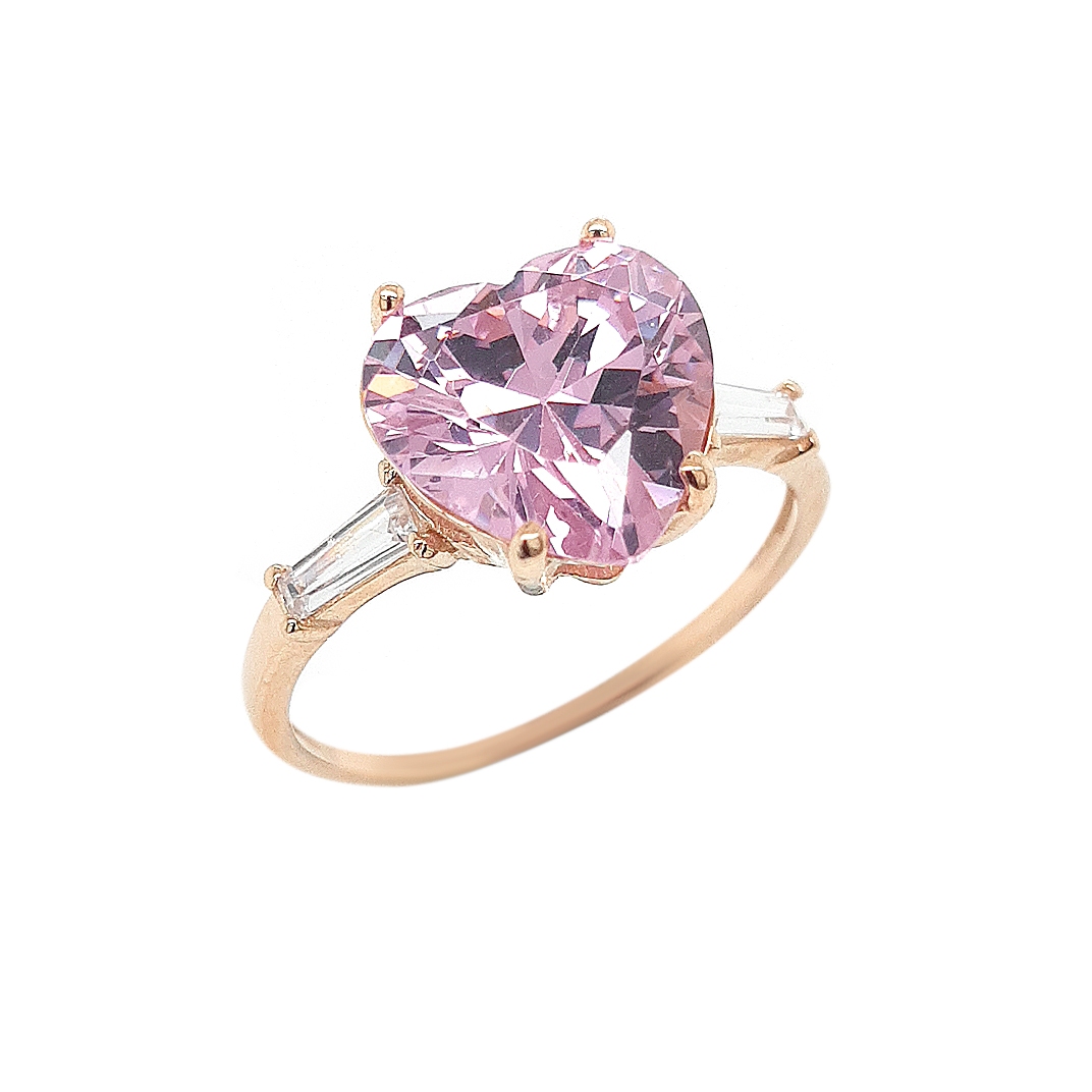 שם פריט: טבעת לב עם אבן ורודה ובגטים בצדדים
