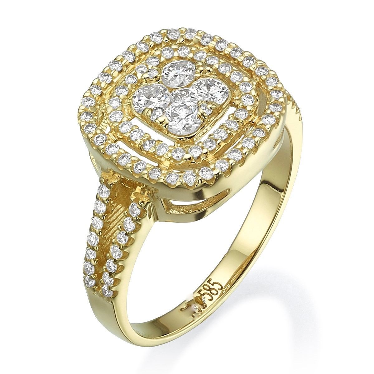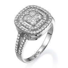שם פריט: טבעת משובצת אבנים בריבוע עם שיבוץ אבנים קטנות מסביב ושתי שורות בצדדים