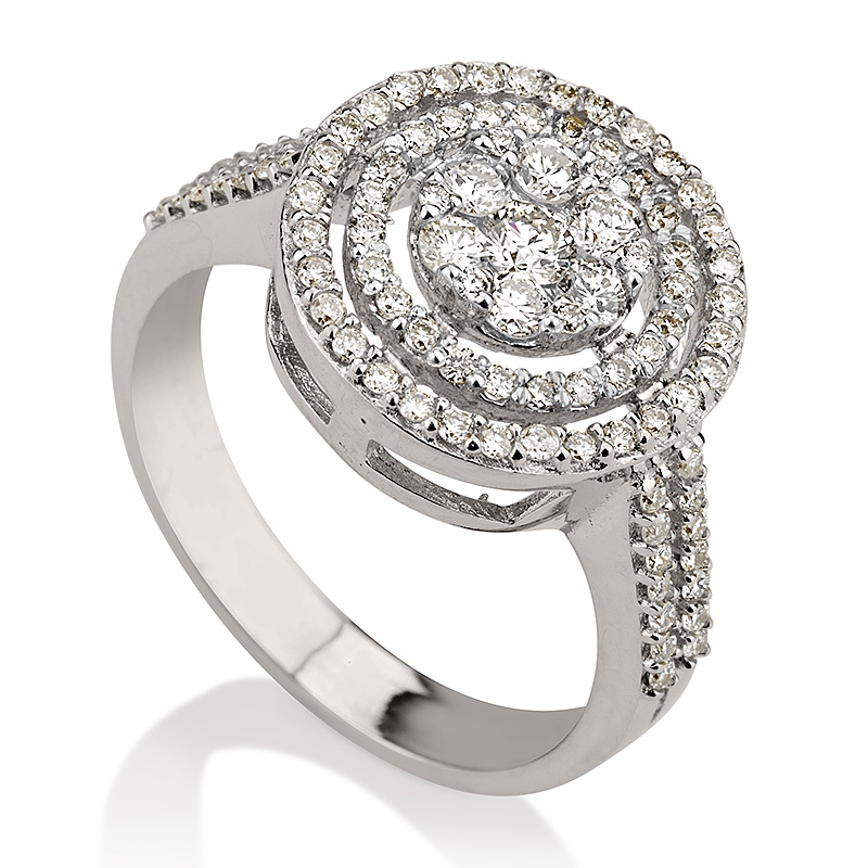שם פריט: טבעת משובצת אבנים קטנות בעיגולים ושתי שורות בצדדים דגם: RD5730