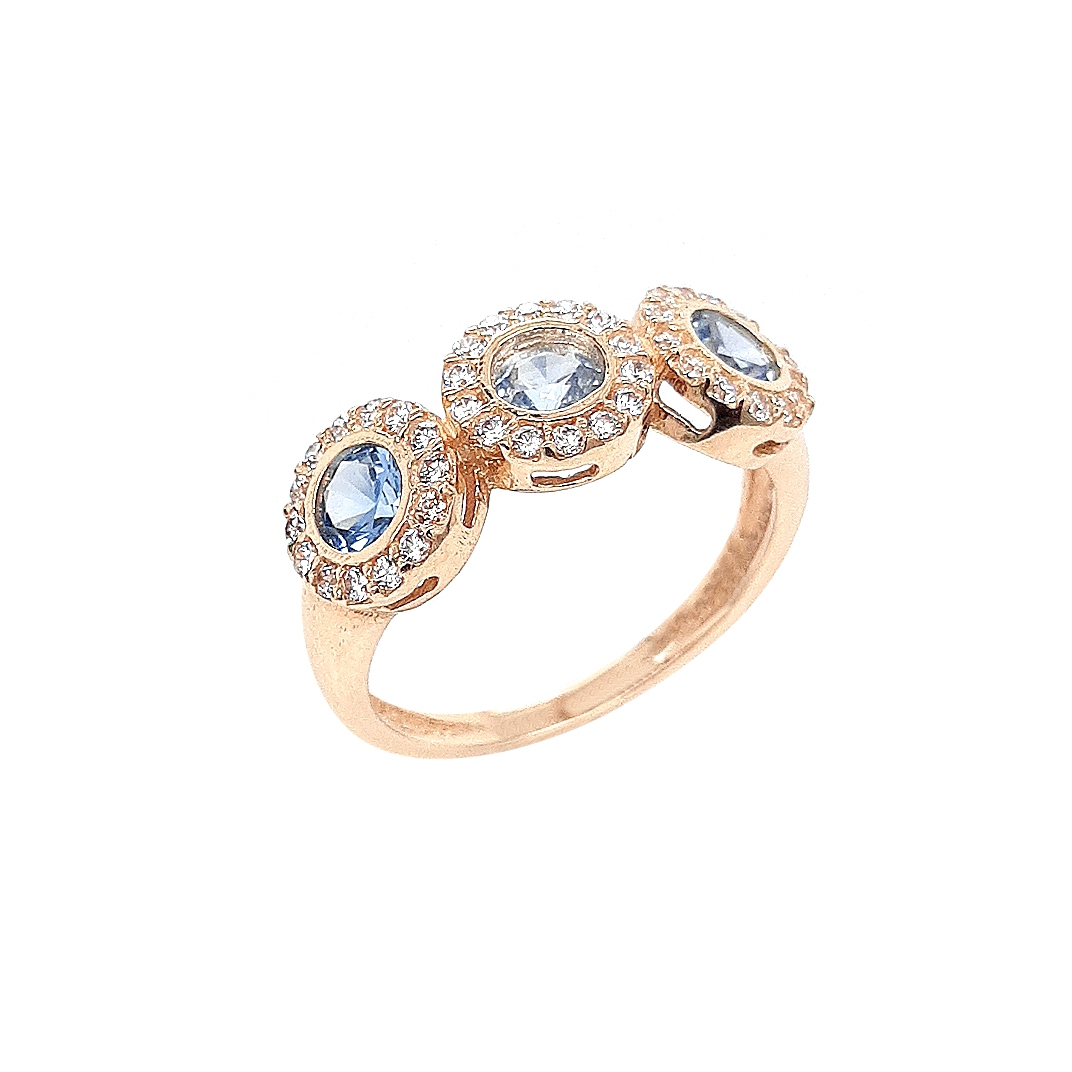 שם פריט: טבעת עיגולי שמש עם זרקון מרכזי בצבע תכלת דגם: GR131