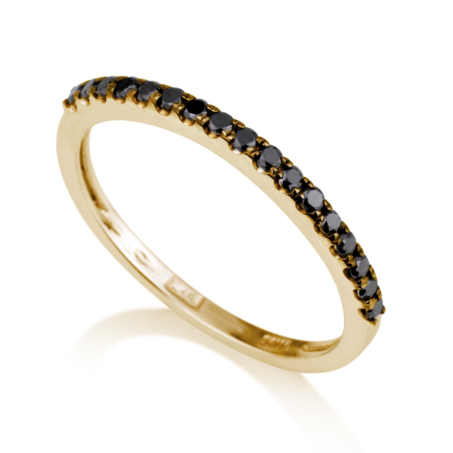 טבעת שורה בשיבוץ אבנים שחורות קטנות