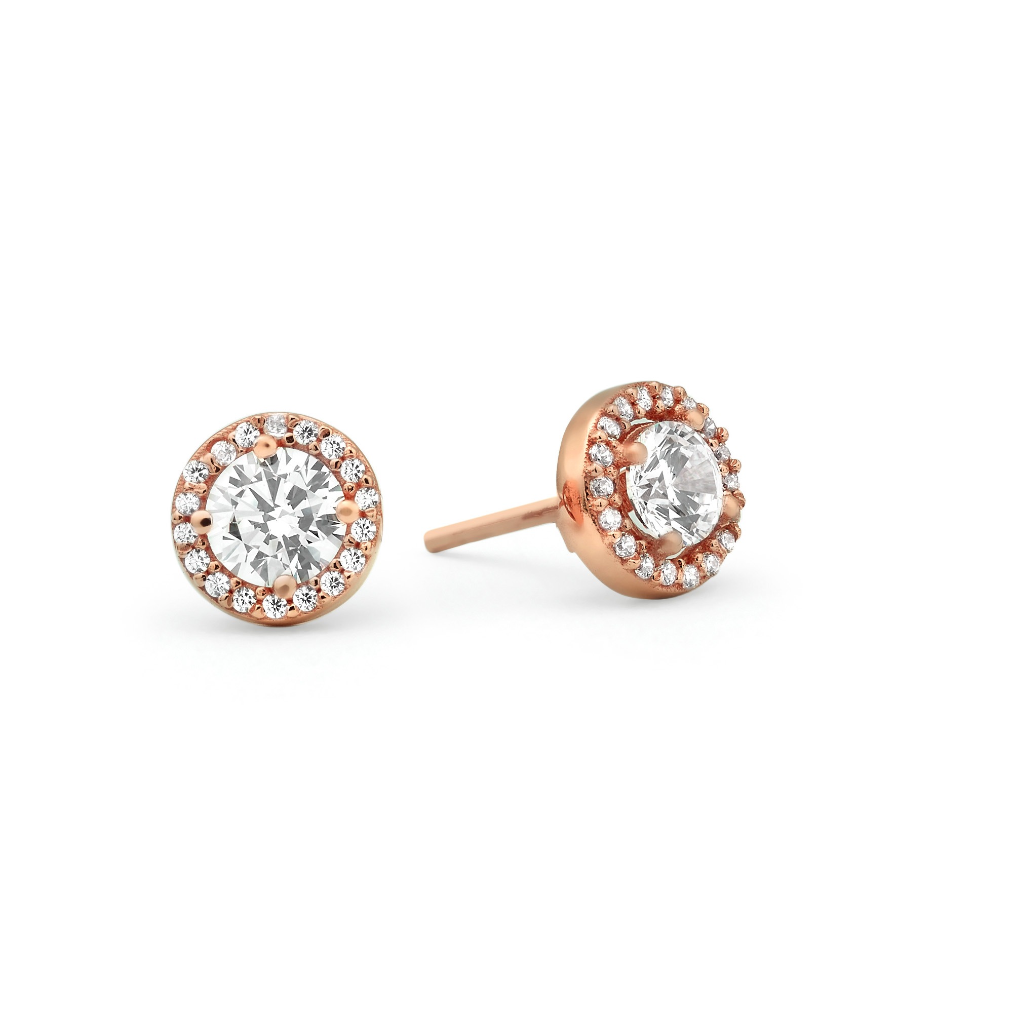 שם פריט: עגילים צמודים עם אבן מרכזית ושיבוץ אבנים קטנות מסביב דגם: ED0150