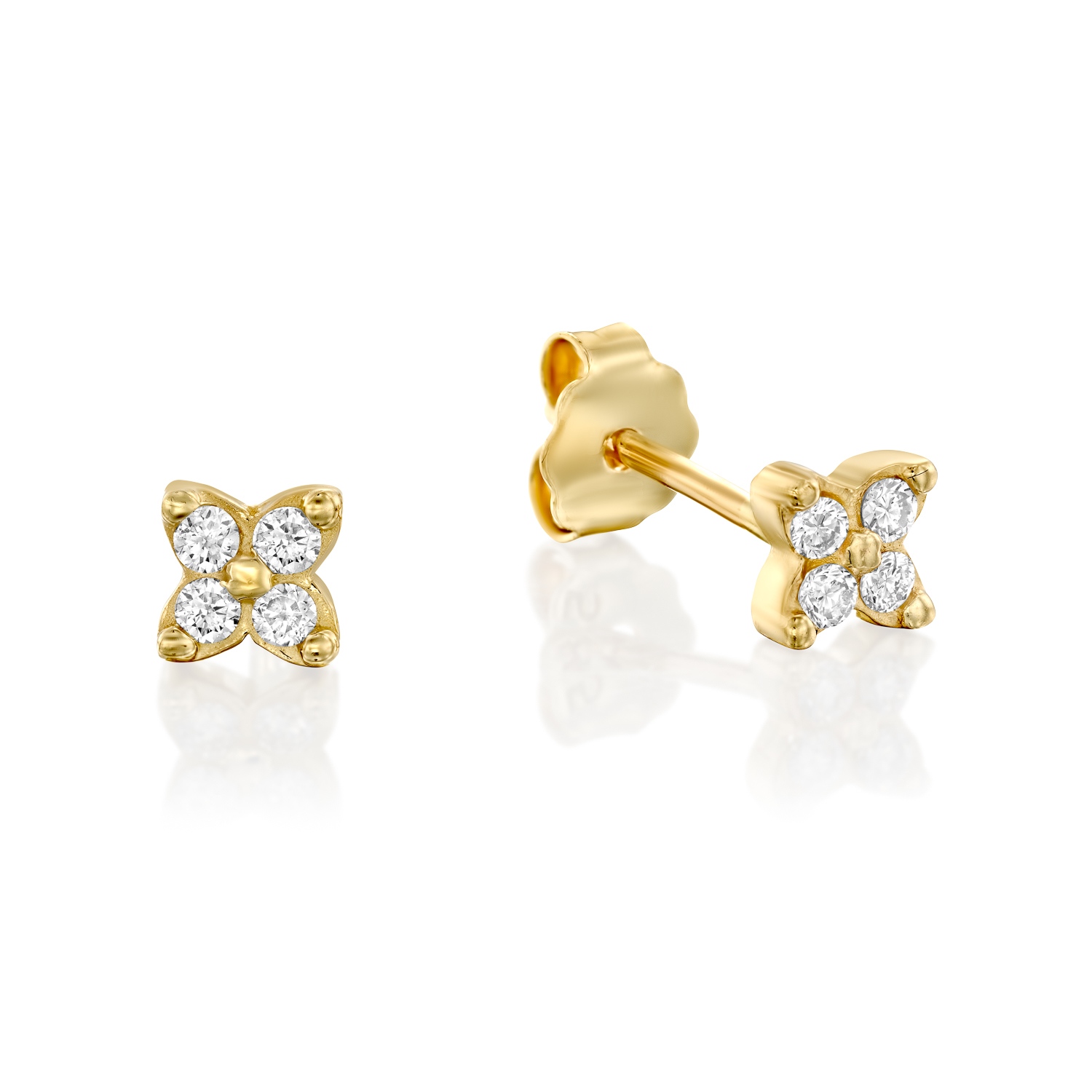 עגילים צמודים פרח בשיבוץ ארבע אבנים quantity