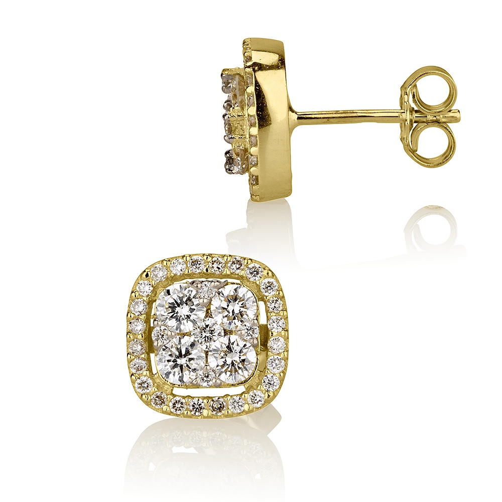 שם פריט: עגילים צמודים ריבוע בשיבוץ אבנים מרכזיות ואבנים מסביב דגם: ED4498C