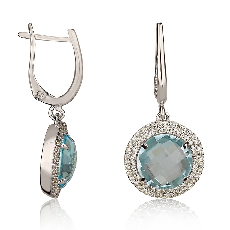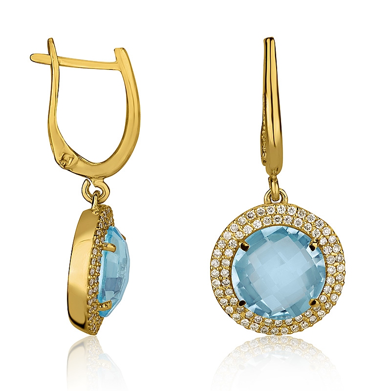 שם פריט: עגילים תלויים עם אבן חן בשיבוץ אבנים קטנות מסביב דגם: ED5483