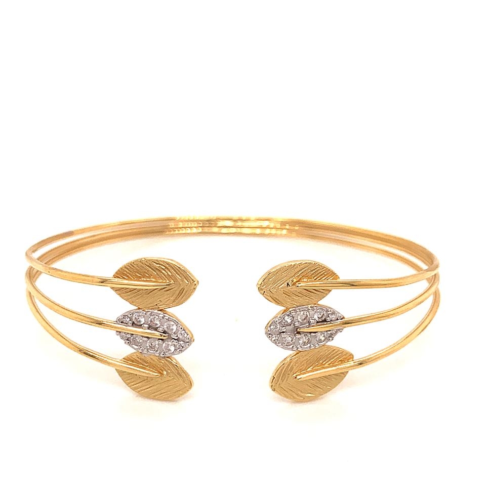 שם פריט: צמיד אומנותי קשיח עלים בשיבוץ אבנים קטנות דגם: BD8066B