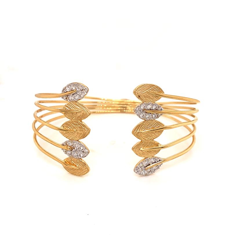 שם פריט: צמיד אומנותי קשיח עלים בשיבוץ אבנים קטנות דגם: BD8066