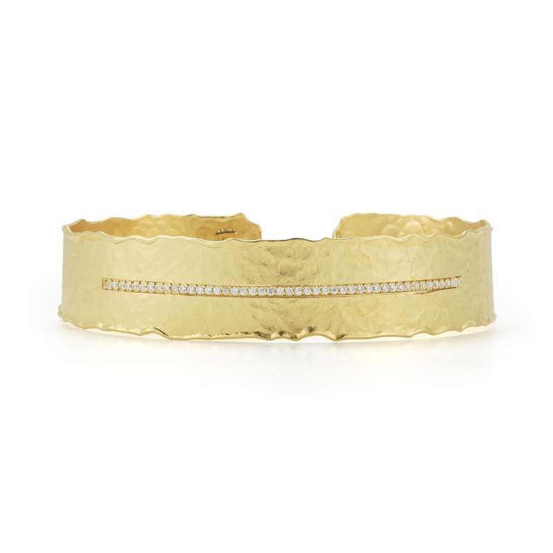 שם פריט: צמיד אומנותי קשיח צר בשיבוץ שורת אבנים קטנות דגם: BD6711