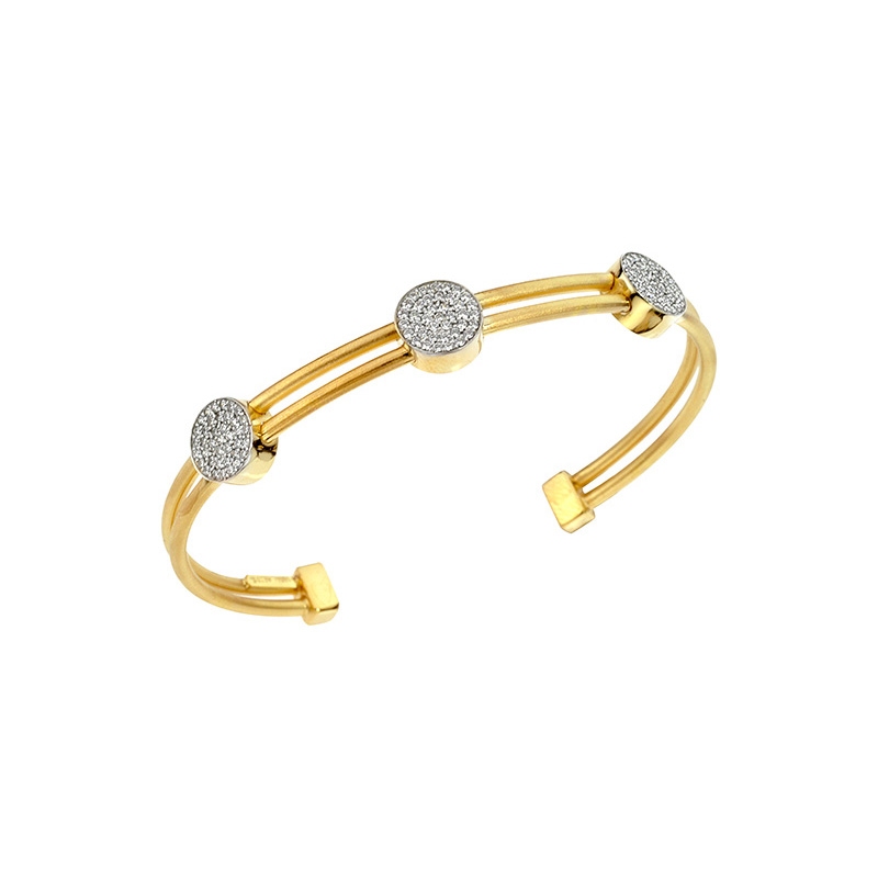שם פריט: צמיד אומנותי קשיח שתי שורות ועיגולים בשיבוץ אבנים קטנות דגם: BD4464H