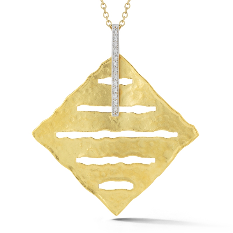 שם פריט: תליון אומנותי מעוין עם פס בשיבוץ אבנים קטנות