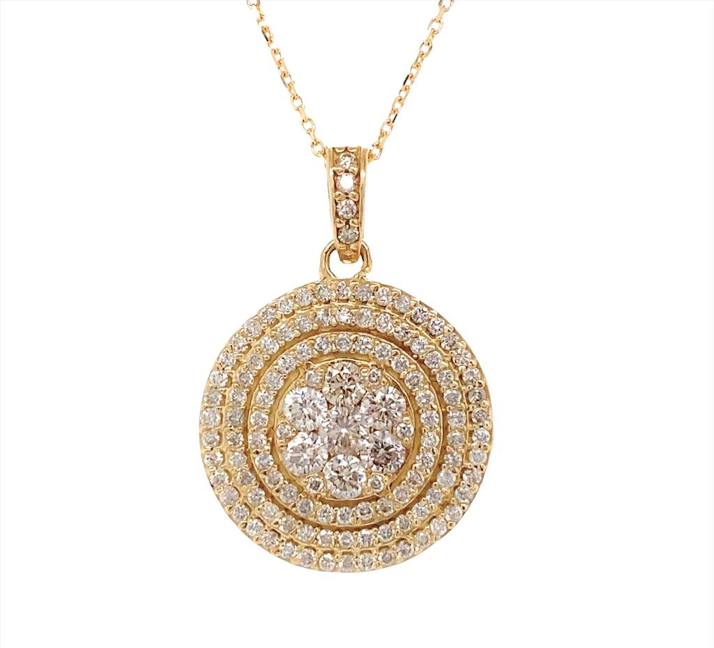 שם פריט: תליון עגול בשיבוץ אבנים מרכזיות ואבנים קטנות מסביב